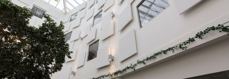 Acondicionamiento acústico en paramentos verticales, con paneles autosoportantes. |