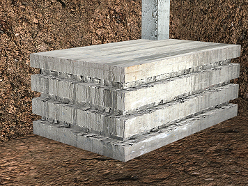 Cajeado lateral horizontal, de 10x10 cm de sección, en fundación existente de hormigón, para recalce de cimientos. |