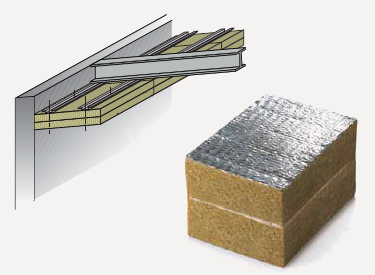 Protección pasiva contra incendios mediante complejo aislante de lana de roca de 60 mm de espesor, acabado con capa de aluminio reforzado, fijado mecánicamente sobre una estructura soporte (no incluida en este precio). |