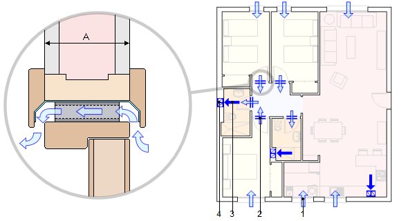 | Abertura de paso para ventilación, con aireador lineal. Colocación en puerta de paso | ||