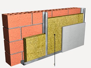 Aislamiento térmico entre los montantes de la estructura portante del trasdosado autosoportante de placas, formado por panel semirrígido de lana mineral, espesor 30 mm, colocado entre los montantes de la estructura portante. | ||